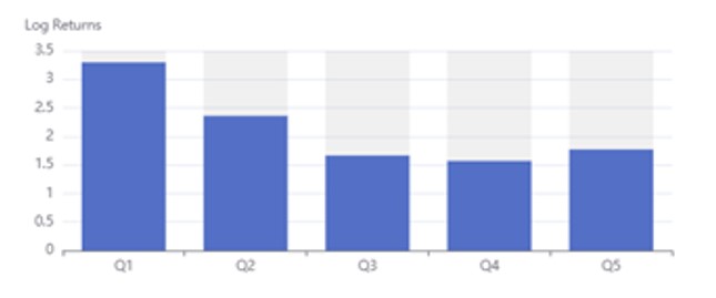 Return Analysis shows that the highest average monthly returns were achieved by stocks in the quintile Q1 with the lowest factor loadings. Q5 does not perform the worst, however, the factor appears to be an appropriate one for the construction of LongShort portfolios.