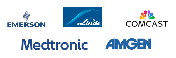 Within the S&P 100 index, the following companies achieved the highest values based on data from 31 December 2024: EMR, LIN, CMCSA, MDT, and AMGN.